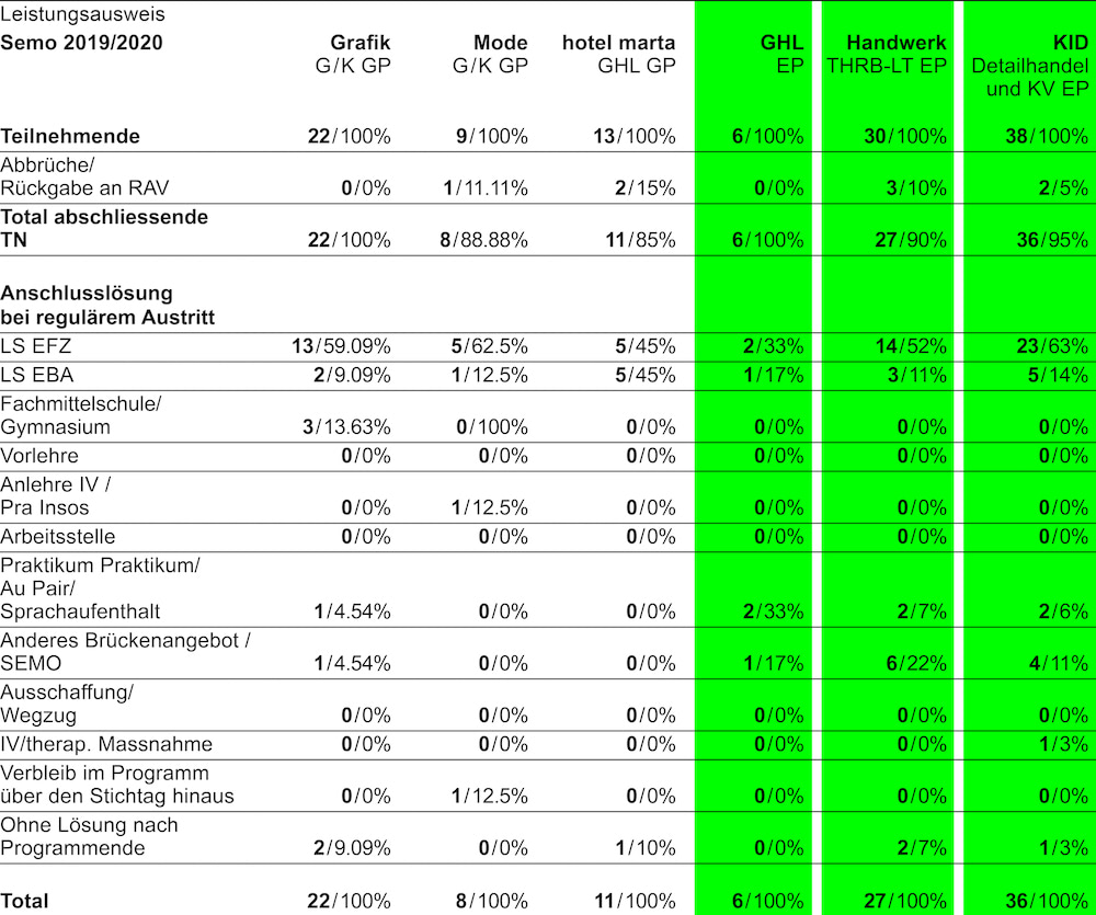 69 junge Frauen und Männer haben das EP Motivationssemester besucht. Davon haben 48 (70%) eine Lehrstelle gefunden.