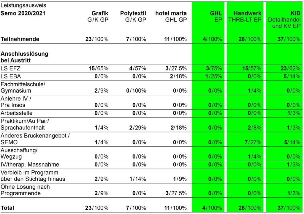 67 Teilnehmende haben dieses Schuljahr unser Programm durchlaufen. Am Ende fand sich fĂźr fast alle eine geeignete AnschlusslĂśsung. Dieses Jahr betrug die Anschlussquote 99%.